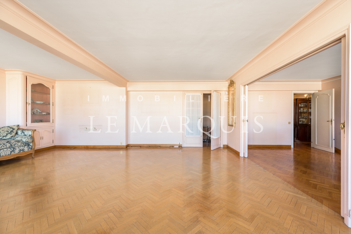 Nouveauté – Marseille 13006 – Place Castellane, au huitième étage de l'immeuble emblématique L'Eldorado, à vendre bel appartement familial de 202 m2 Loi Carrez et studio de 12 m2 Loi Carrez avec terrasses et place de parking. Ce T7 traversant Est-Ouest se compose d'un agréable séjour-salle à manger lumineux de 57 m2 avec belle vue panoramique sur la ville. L'espace nuit comprend cinq chambres confortables dont trois sont ouvertes sur des petites terrasses où l'on peut se détendre avec vue sur Notre-Dame de la Garde et sans vis-à-vis, trois salles de bains, nombreux rangements et dressing. Un studio sur le même palier permet d'obtenir une sixième chambre. Des travaux sont à prévoir. Deux caves et place de parking dans l'immeuble viennent compléter ces biens très agréables à vivre. Immeuble sécurisé avec gardien. Idéalement situé, à proximité immédiate des accès autoroutes, métro, bus, tramway, commerces et écoles – Pour plus d’informations sur cet appartement, n’hésitez pas à contacter votre conseillère, Nathalie de Villers 06 17 37 32 29, qui répondra à toutes vos questions et vous organisera une visite à votre convenance (possibilité visite à distance en direct sur demande) – Une exclusivité Immobilière Le Marquis – Prix de vente : 680 000 €. Honoraires agence à la charge de l'acquéreur : 4,61% TTC du prix net vendeur (650 000 €) soit 30 000 € TTC – Les informations sur les risques auxquels ce bien est exposé sont disponibles sur le site Géorisques : www.georisques.gouv.fr