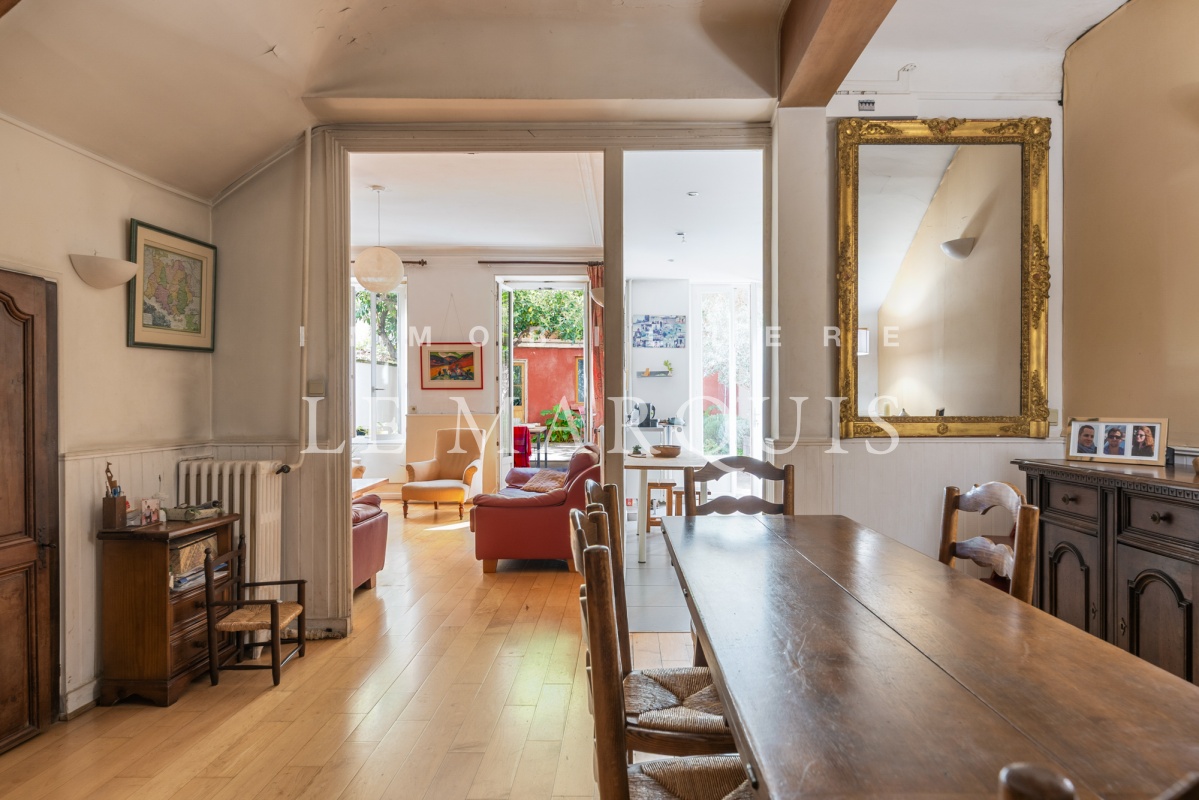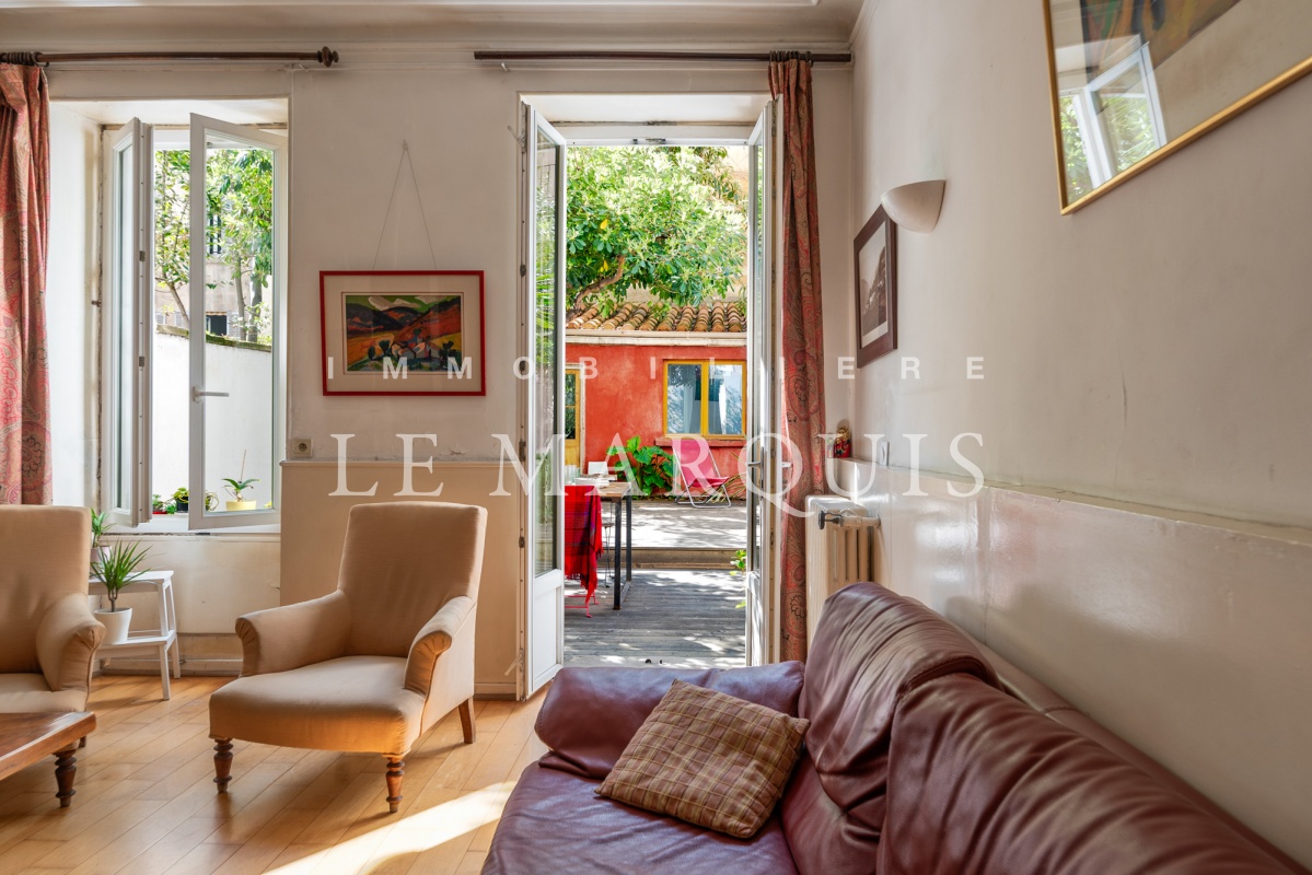 Nouveauté – Marseille 13006 rue Marengo – Entre le quartier de Notre-Dame-du-Mont et la Place Castellane, dans un bel immeuble ancien bien entretenu, vente d’un appartement duplex T5 traversant de 155 m2 habitables (108 m² loi Carrez) avec jardin. Cet appartement aux beaux volumes se compose au rez-de-jardin, d'un séjour, d'une salle à manger et d'une cuisine fermée, ouverts sur le jardin ; au premier étage, se trouvent trois belles chambres. Une dépendance dans le jardin permet d'obtenir une quatrième chambre. Les belles hauteurs sous plafond, tomettes et cheminée rappellent le charme de l'ancien. Le jardin de 54 m2, exposé à l'Ouest, est un véritable havre de paix et une invitation à la détente. Nombreux rangements et buanderie. Possibilité d'acquérir un box. La proximité des commerces, écoles, bus, métro et tramway, des accès autoroutiers et du centre-ville permettent une vie agréable et confortable – Pour plus d’informations sur cet appartement, n’hésitez pas à contacter votre conseillère, Nathalie de Villers 06 17 37 32 29, qui répondra à toutes vos questions et vous organisera une visite à votre convenance (possibilité visite à distance en direct sur demande) – Une exclusivité Immobilière Le Marquis – Les informations sur les risques auxquels ce bien est exposé sont disponibles sur le site Géorisques : www.georisques.gouv.fr